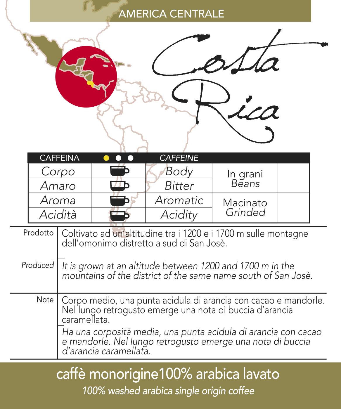 oltivato sulle montagne dell’omonimo distretto a sud di San Josè, ad un’altitudine tra i 1200 e i 1700 mt, monorigine. Le condizioni climatiche e geografiche unite alla ricchezza del suolo vulcanico ricco e ben drenato offrono un ottimo habitat naturale per la coltivazione.