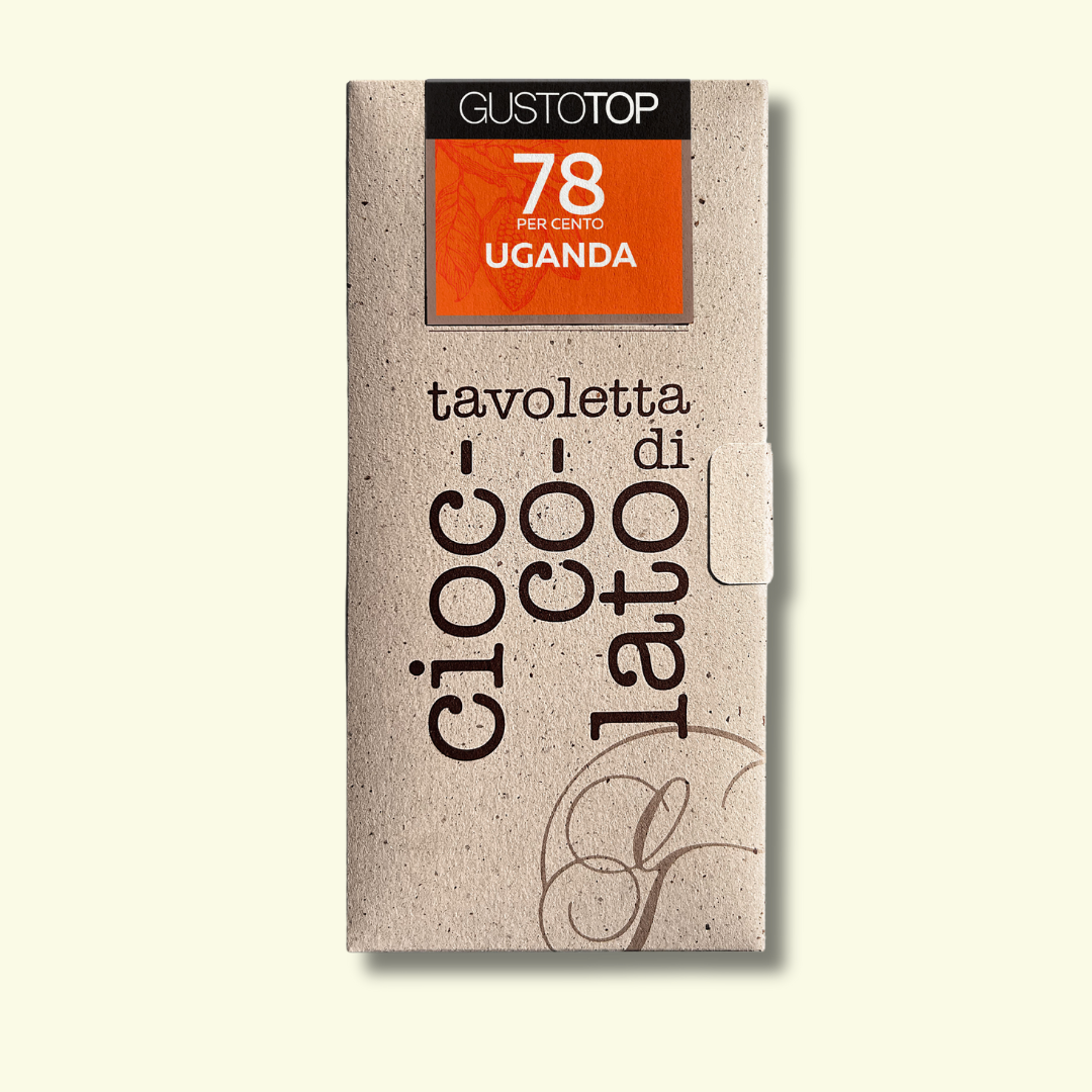 Tavoletta di Cioccolato Fondente Monorigine Uganda 78% Il cioccolato che ne deriva rappresenta l’essenza dell’Africa: grande potenza di gusto, caratteristico nell’aroma cacao, intenso e con una lunga persistenza.