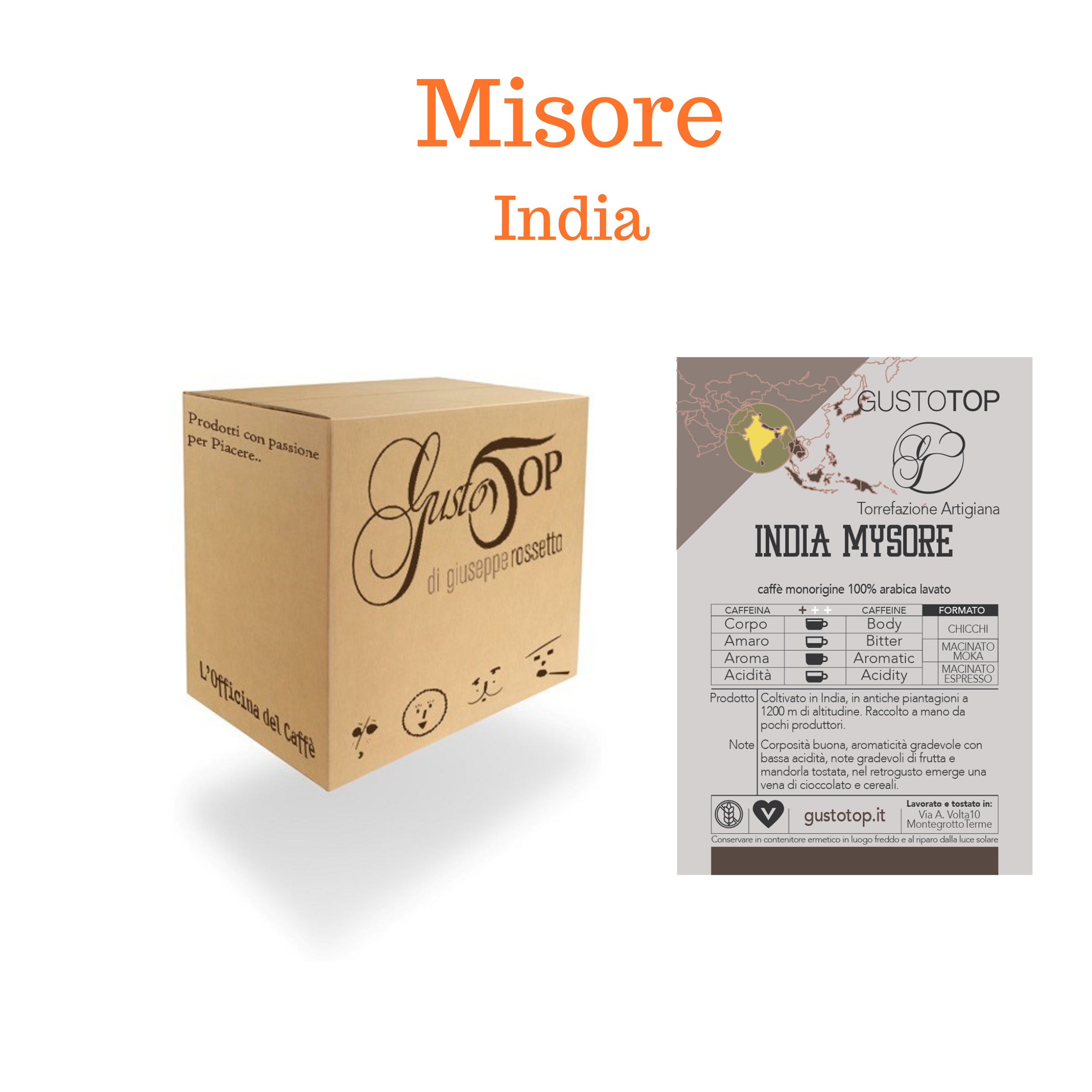 Origine: Questa varietà di arabica è coltivata in India, in antiche piantagioni a 1200 mt di altitudine. Raccolto a mano da pochi produttori rappresenta un vero gioiello di caffè.